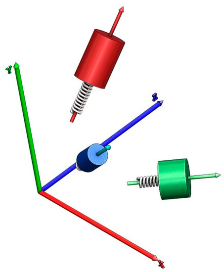Analyzing a system in the time domain requires a very large computation capacity. For this reason, a solution to solve vibration problems is the method of modal analysis by superposition. Besides the frequency, the percentage of the masses that participate, and the shape of the structure deformation, this analysis is associated with the direction of the deformation as a function of elasticity. Thus, an object in a certain mode of vibration can be represented by a system with a single degree of freedom (DOF) with mass, elasticity, and deformation directions that correspond to the properties of the considered mode. We can represent a system with three oscillators with one DOF each, regardless of its complexity. Figure 7 shows the principle of the modal analysis by superposition method. This is used in finite elements vibration analysis of linear systems [11].