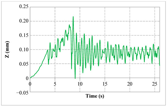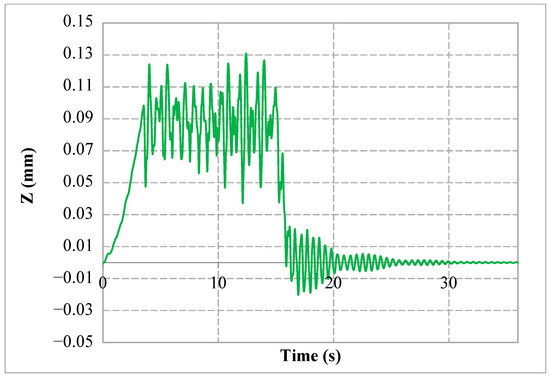 For the Z-axis, the oscillations obtained from the simulation are similar in shape to those corresponding to the Y direction, the oscillations being around 0.09 mm, with the maximum amplitude of 0.053 mm.
