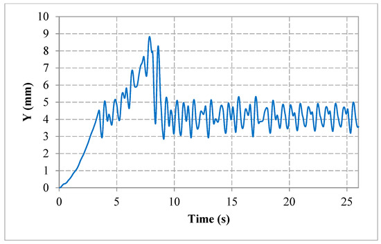 The oscillations have the highest value on the Y-axis, where the oscillations during the permanent regime vary around 4.1 mm of deformation, with the maximum amplitude of 1.1 mm.