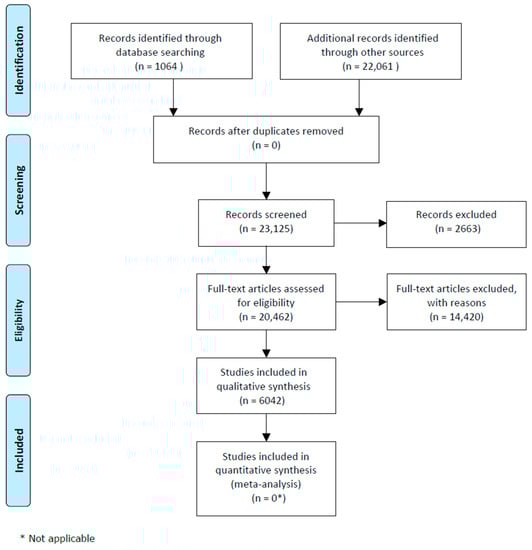 - Moher, D.; Liberati, A.; Tetzlaff, J.; Altman, D.G. Preferred reporting items for systematic reviews and meta-analyses: The PRISMA statement. Ann. Intern. Med. 2009, 151, 264–269. [Google Scholar] [CrossRef]