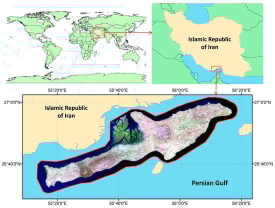 Case under study is the Qeshm Island suited in the south of Iran close to the Strait of Hormuz in the Persian Gulf (Figure 1) from 55°14′58″ E to 56°17′27″ E and from 27°00′00″ N to 26°32′04″ N. As the country’s biggest free trade zone with respect to the landmass [23], Qeshm is one of the most densely populated islands in Iran, with an area of 1491 square kilometers, approximately two times bigger than Bahrain as the second largest island in the Persian Gulf [24].
