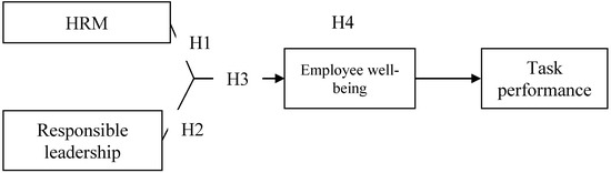 The mediated moderation model was examined following Liu, Zhang and Wang (2012) [90]. First, the relationship between HRM and well-being was examined. Second, the moderating effects of responsible leadership on the relationship between HRM and employee well-being was tested. Third, the mediating effects of employee well-being between the interaction effects and employee task performance were examined. This provides explanations on how responsible leadership changes the relationship between HRM and employee well-being, and the relationship between well-being and task performance.