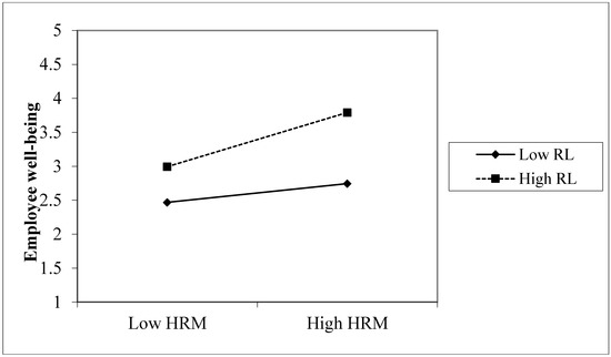 The interaction effects of HRM and responsible leadership on employee well-being. HRM: Human resource management; RL: Responsible leadership.