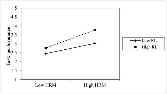 The interaction effects of HRM and responsible leadership on employee task performance. HRM: Human resource management; RL: Responsible leadership.