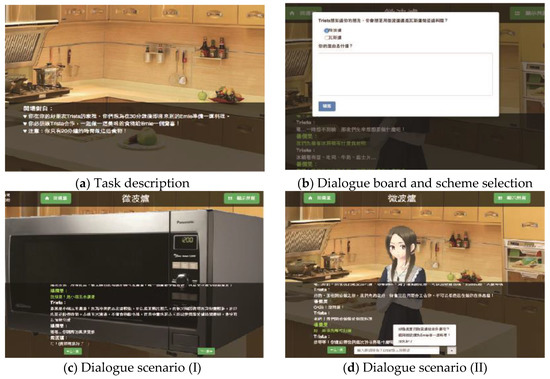 The present study employed four of the eight abovementioned problem-solving tasks (the fastening shelves problem, the using a microwave problem, the placing water problem, and the organizing a bedroom problem). Figure 2 shows the interface for the “using a microwave” problem that enables learners to work together to prepare food using their knowledge of science and sustainability, including knowledge of the heating method, power, and microwave penetration.