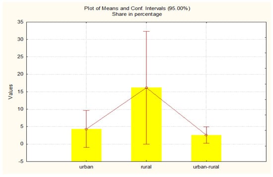 In the period presented (2007–2014), the budget of 127 municipalities was supplied by payments for agricultural tax. The highest receipts were recorded in municipalities (in the order of decreasing total payments): Lidzbark Warmiński (urban), Ustrzyki Dolne (urban), Wisznia Mała (rural), Długołęka (rural), Miękinia (rural), Braniewo (rural), and Starbmierz (rural). The smallest sums of money were transferred to the budgets of municipalities: Wierzchowo (rural), Słupsk (urban), and Zaklików (rural).