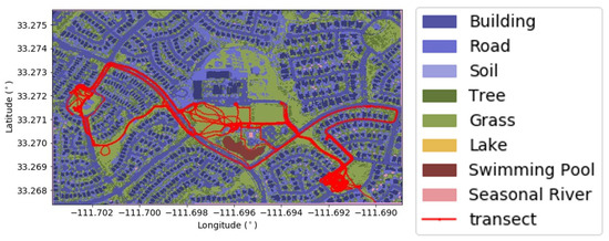 Land-use classification map with transect for data collection in the Power Ranch study area. Land cover classification obtained from [71].