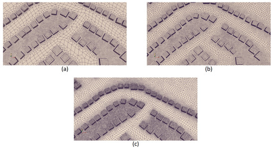Meshes for the (a) Coarse, (b) Medium, and (c) Fine cases.