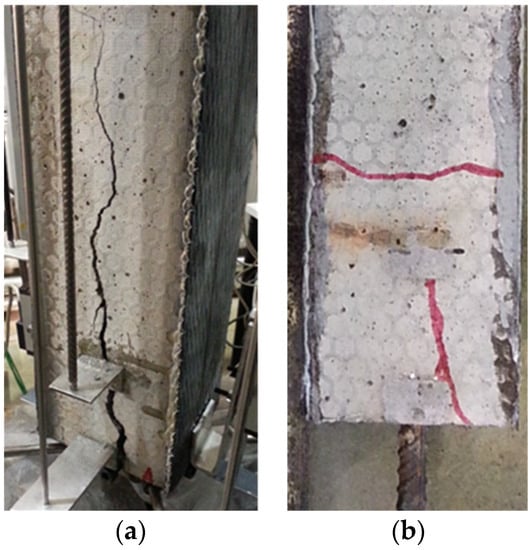 Furthermore, as demonstrated by previous experimental investigations [,,], the addition of steel fibres could improve the energy dissipation of cracked concrete and effectively suppress the tendency of crushing, spalling, and shear failure of concrete. Steel fibre-reinforced concrete has been applied in multiple infrastructure projects such as vehicular and metro tunnel linings for improved resilience [,,]. The fibres, moreover, can increase the damage resistance of the strengthening systems [,]. In practice, partial reconstruction can be done, by underpinning and replacing part of the existing concrete with newly cast steel fibre-reinforced concrete, such process also offers the opportunity of replacing the steel reinforcing bars with fibre-reinforced polymer (FRP) bars. The employment of FRP bars, compared to conventional reinforcing steel, offers the major advantages of high strength-to-weight ratio, high tensile strength, and free from corrosion problem [,]. Particular, the corrosion-free property can allow reduction of concrete cover for higher structural efficiency as well as can enhance the durability. After concrete casting and curing, the external sheet can be installed to strengthen the member. Previous research has proven the effectiveness of externally-bonded sheets in structural retrofitting and strengthening [,]. The external sheet can be bonded to the concrete surface by constructional adhesive, or additionally fastened mechanically to result in a more effective hybrid jointing [,]. As an illustration, Figure 1 demonstrates the efficiency of steel fibres in preventing the formation of splitting cracks in concrete prisms bonded with external carbon fibre-reinforced polymer (CFRP) sheets [].