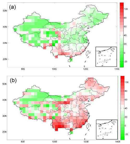 To identify key risk areas in vulnerable eco-regions, a model-MRI-CGCM3 (Meteorological Research Institute atmosphere–ocean coupled global climate model version 3) with high spatial resolution that was more suitable for Asia was used to analyze precipitation, temperature and evaporation. MRI-CGCM3 can capture regional differences over subtropical China [45] and can better simulate the spatial distribution of Chinese meteorological factors. The uncertainty of the model is given in Appendix A. The uncertainty is calculated based on the statistics of the model and observations and the error between them.