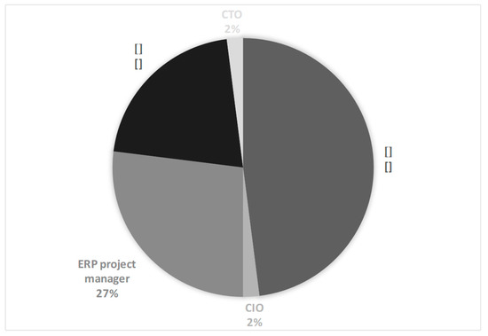 The survey results show that the respondents from the companies selected are represented by IT managers (48%), ERP project managers (27%), other business managers (21%), 2% Chief Information Officer CIOs, and 2% Chief Technology Officer CTOs (Figure 5).