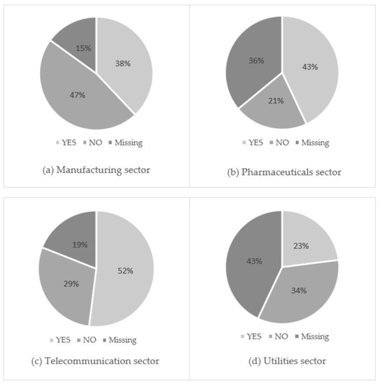 Companies in the telecommunication sector have the highest level of agreement concerning positive attitudes toward applying various actions to improve the sustainability of ERP software (37.23%). They are focused on optimization of resource usage during ERP software tasks, considering the provision of energy efficiency conditions related to attributes that reflect the software quality (i.e., portability, feasibility, usability). In the manufacturing sector, we noted a positive level of agreement of only 6.14%, which suggests less interest in developing ERP software with minimized environmental impacts. The results of the survey related to this category show that awareness about software sustainability is heterogeneous through the selected economic sectors (Figure 6). We found a substantial level of neutral attitude in the telecommunication and pharmaceuticals sectors, revealing a misunderstanding about sustainable software aspects as a condition of developing green ERP systems.