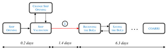 PM enabled more reliable and punctual measurements of the process time performances from a process control and monitoring standpoint—a benefit that is not directly related to the interventions on the low-performing arcs. As the time data in the event log are a transparent evidence of the actual behavior of the IS, they are the basis for a more structured overview about time performances that may lead to revising the performance indicators. For instance, in line with the results regarding Arc 1, the overall mean time length of a process might conceal those arcs or activities whose time frame may seem acceptable, but that may overestimate the time needed for executing the process. Thus, it may be useful to introduce additional indicators, such as the mean time frame of the main subprocesses belonging to the process under analysis. Examples of subprocesses to consider may be the one going from Receiving the BoLs to COARRI and the one encompassing Ship Opening, Change Ship Opening, and Ship Validation (Figure 4).