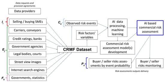 - CRMF is conceptualized as external to the certain business ecosystem-level services provider. SMEs as CRMF’s services users would get risk assessments of potential and/or existent commercial partners—suppliers or buyers. Such services would help SMEs reduce costs for human resource development, data collection, data processing and AI-based risk assessment solution maintenance.