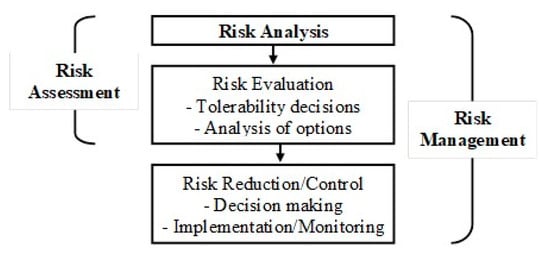 Risk assessment and management: in the risk management vocabulary of ISO Guide 73 (2009, p.5) [], risk assessment is defined as the overall process of risk identification, risk analysis, and risk evaluation. ISO 31000 (2009) [] adopts this definition and conceptualizes risk assessment.