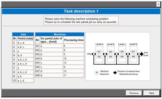 By Participation of the workers in the design process of interfaces, the interaction quality can be improved, and the efficiency of the design process can be increased. On the one hand, this participation can provide a complete picture of the work system during the requirements analysis and, on the other hand, can improve the acceptance of the interface at its introduction and operation [70,71]. Work allocation deals with the assignment of tasks within the human–machine system and allocates them to humans and automation [29]. This division of functions follows the present automation strategy and influences the quality of use and acceptance of CPPS [72]. The Complexity of a work task is a consequence of the required action and the available information and determines the work performance [73]. Complex conditions in terms of work design can be addressed by behavioral prevention (training) or structural prevention (reduction of complexity) [28].