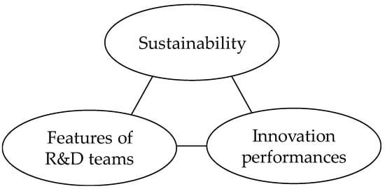 In synthesis, from a sustainability perspective, team experience, mobility, openness, diversity and maturity are all related to the efficient use and re-use of knowledge sources to achieve high-quality results with less effort and in less time and, at the same time, to further developing and strengthening the same sources for future use. For this reason, we believe that companies with higher sustainable propensity might achieve better innovation performances from the composition of their R&D teams (Figure 1).