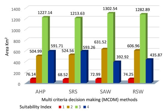 Multi-criteria decision-making (MCDM) methods comparison in the suitability index areas.