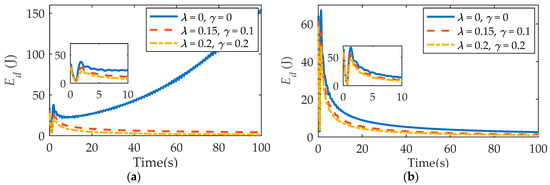 Curves for energy dissipation rate under different parameters λ and γ with different sensitivities: (a) α = 1.0 and (b) α = 2.0.