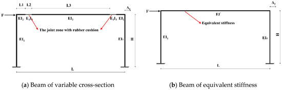 5. At the end of the paper, a formula about the stiffness of the novel joint is obtained and compared with the experimental results. Additionally, in order to simplify the process of calculation, the formula of the equivalent stiffness model frame is proposed. The equation of can be used to obtain the same displacement of a constant stiffness beam as the variable stiffness beam, which can provide a new computing method of the joint.
