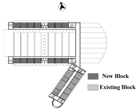 The building where the new classrooms were located resulted in the addition of two new volumes located on the sides (dark gray in Figure 1), and absorbed the area corresponding to classrooms, science and technology laboratories, and workshops. The largest facades are north and south, as these facades form an angle of 105 ° north. The building materials of the facades, the interior walls, the windows and the doors used in the FHHS are defined in the supplementary material attached to this article.