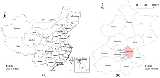 Location of (a) Beijing in China and (b) Chaoyang District in Beijing.