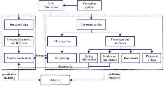In recent years, building information modeling (BIM) has become the most flourishing technology in the building industry, and it has been extended to infrastructure engineering [10]. This technology is a new approach and can be used for design, construction, and facilities management of structures, wherein a digital representation of the building process is used to facilitate the exchange and the interoperability of information [11]. The application of BIM brings about cost reduction, quality control, and efficiency improvement throughout the life cycle of the project. A survey by Stanford University in the United States pointed out that BIM can eliminate 40% of extra changes, reduce the contract price by 10% by discovering and resolving conflicts, and shorten the project duration by 7% [12]. With these advantages, BIM has also been adopted by commercial software, such as Autodesk Revit, ArchiCAD, and Allplan [13]. Furthermore, BIM has been successfully implemented in many bridges’ designs [14,15] and constructions [16,17,18]. However, the application in the maintenance phase started relatively late. McGuire and Atadero [19] utilized the BIM to manage the inspection and evaluate information. Abudayyeh and Al-Battaineh [20] adopted the as-built bridge information model for maintenance and management. Some scholars [21,22,23] also combined the BIM with the traditional management system to improve maintenance efficiency.