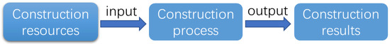 International Standard Organization (ISO) provides the information classification framework (ISO 12006-2). This framework [31] divides the building information into three categories: construction resources, construction processes, and construction results. Construction results are produced by applying construction resources to the construction process, as Figure 2 shows. Among them, the primary construction resources include products, tools of production, roles of bridge engineers, roles of bridge engineering organizations, information, materials, attributes, etc. Meanwhile, the construction process includes the behavior of bridge engineering, the project phase of bridge engineering, the professional field, etc. The construction results consist of the structures classified by function, morphology, and so on. The classification and the encoding of the bridge maintenance information can refer to or extend from the existing IFD standards. For the cases where the current standards cannot satisfy the needs, information needs to be classified and encoded based on the ISO 12006-2 framework.