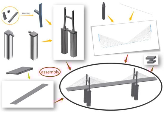 (2) Assembly of components. The separate components need to be assembled to form the bridge model. For components with geometric constraints, users can assemble them directly. For component types without direct constraint relationships, the reference surfaces and the reference points need to be created to help determine the location of the components. The assembly details can be seen in Figure 4.