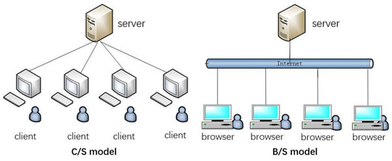 As Figure 6 shows, C/S (client/server) models and B/S (browser/server) models are currently mainstream network structures. The C/S model belongs to a distributed application structure that can partition tasks or workloads between the providers of a resource or service, called servers, and service requesters are called clients. Often, there is communication between clients and servers over a computer network on separate hardware, but both the client and the server may reside in the same system. The device utilization is highly efficient, and the security can be ensured. However, this structure is less scalable and is generally limited to local networks. The cost for the system’s maintenance and upgrade is high. The B/S model developed along with the rise of the Internet. This model centralizes the core part of the system's functional implementation to the server, which greatly simplifies the client computer load and reduces the cost of system maintenance and up-gradation. Users only need a web browser to get access to the system without installing a client. B/S model’s security is relatively poor, which is why some measures such as permission control are needed.