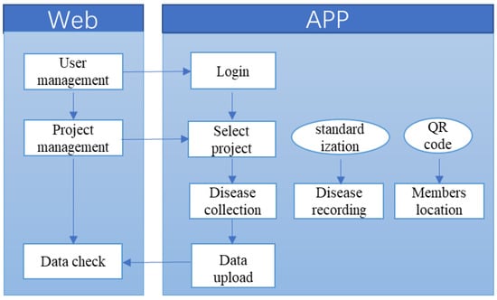 The data center obtains static and dynamic data of bridges from scattered data resources through the data acquisition system of bridge maintenance. The dynamic data collection system includes two parts: the front-end collection program and the background management program. The front-end collection program is mainly the mobile APP software, which is responsible for real-time collection, input of maintenance data, and uploading information to the background management program. During the process, the background management program is responsible for managing the collected data and generating reports.