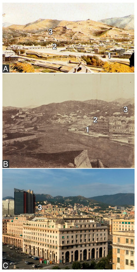 - Sacchini, A.; Imbrogio Ponaro, M.; Paliaga, G.; Piana, P.; Faccini, F.; Coratza, P. Geologial Landscape and Stone Heritage of the Genoa Walls Urban Park and surrounding area (Italy). J. Maps 2018, 14, 528–541. [Google Scholar] [CrossRef]