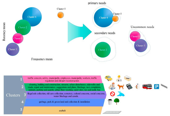 Uncommon needs: Issues of the first and third clusters have a very low frequency and recency and refer to the minor needs. That is why these two clusters were considered as uncommon needs. The problems of this group happened less because of the smallness of the city and the data collection time period (early summer) and most of them occurred just once in a month.