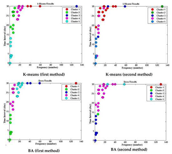 The finding of clustering is shown based on two factors (frequency and recency) using BA in the first method in Table 7.