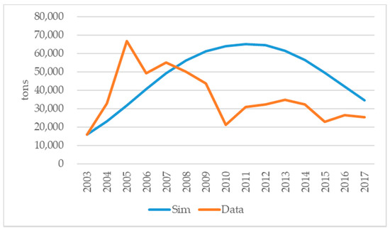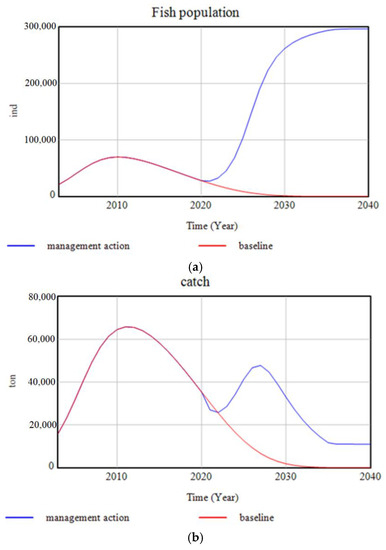 The goodness-of-fit of this model is tested by comparing the historical data on the fish catch with the simulation result (Figure 10). As the RMSPE value is not very large at 0.67, and Theil’s statistics indicates that the error is caused by unequal covariance, the model is acceptable (Table 4).