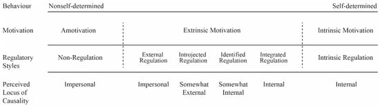 - Deci, E.L.; Ryan, R.M. The “What” and “Why” of Goal Pursuits: Human Needs and the Self-Determination of Behavior. Psychol. Inq. 2000, 11, 227–268. [Google Scholar] [CrossRef]