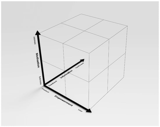 Increasingly, calls have been made to embrace a more participatory approach to feedback in which the information provided cannot just be top-down or bottom-up, but feedforward. The notion of feedforward has been suggested as a potential role of design, whereby its representation goes beyond the function of feedback and provides an individual’s selection of action that is based on future scenarios or predictions of the future state that can be speculative []; referred to as advice by []. The design element in this type of DfSB strategy may delegate more control for the inclusion of user’s autonomously driven interaction in between services and product and increase its relationship to the user, which is created through voluntary occurrences. In the psychological domain, the concept of feedforward also has strict interconnection with motivation []. If user acceptance of the feedforward method is high and personalised, it could better inform and empower more responsible decision making via positive advisory information. In this context, it can be instructive to include feedforward strategy into the spectrum of the ‘information’ dimension, which could potentially instigate the internalisation of behavioural change in a more effective way.
