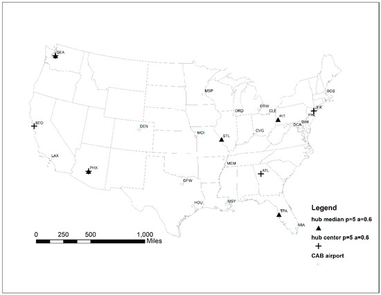 - Sasaki, M.; Suzuki, A.; Drezner, Z. On the selection of hub airports for an airline hub-and-spoke system. Comput. Oper. Res. 1999, 26, 1411–1422. [Google Scholar] [CrossRef]