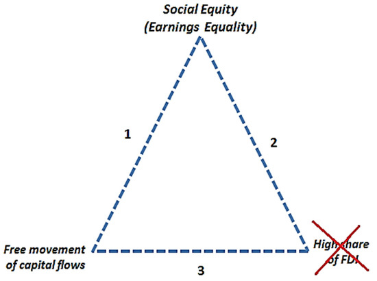 Figure 3. Social trilemma and the high share of FDI pillar. Source: Authors’ work.