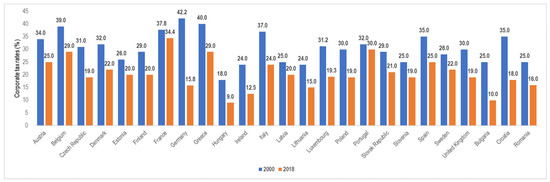 Corporate income tax (CIT) rates (2000 vs. 2018). Source: OECD Statutory Corporate Income Tax Rates.