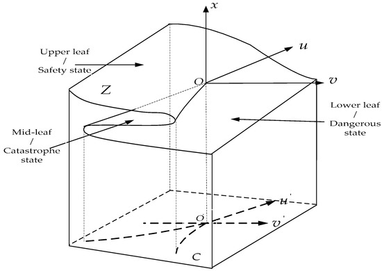 Catastrophe theory was proposed by the French mathematician Rene Thom based on mathematical foundations such as topology and structural stability to address problems involving discontinuous changes and catastrophe [27]. Using different elementary functions to correspond to different types of mutations, theoretical analysis of the system can be applied not only to the natural sciences such as mathematics, physics, and mechanics [28], but also to the fields of social sciences and engineering sciences [29]. Generally, there are multiple stable state systems in the evolution process, which can be analysed by using the catastrophe theory [30].