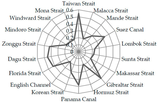 A maritime transport node is a specific maritime area with a special geographical location or special supply function for ships at sea; such nodes include canals, straits, and important ports [1]. With the emergence of nontraditional security issues at sea, research on the security of key nodes in maritime transport has received increasing attention. Notably, security studies have been conducted on specific key nodes, such as the Strait of Malacca; specifically, some scholars have discussed its security [2], and some have proposed security measures related to the impacts of specific risk factors [2,3]. In addition, security analyses of some other key transportation nodes, such as the Panama Canal, the Suez Canal, the Strait of Hormuz, and the Turkish Straits, have been conducted from different perspectives [4,5,6,7]. There are also studies on maritime transport based on the strait or canal. Gao, T. and Lu, J. [8] used a mathematical model based on a programming formulation to measure the impact of a blockage of a strait or canal on the Chinese fleet. Wu Di et al. [9] analysed statistical data on all routes operated by the top 100 global container liner companies and constructed a network model to study the impact of main channel interruption on container shipping. Zhi, H. et al. [10] discussed the proposed Kra Canal and its impacts on the tanker market from an economic perspective.