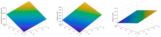 It can be seen from Figure 7a–c that the increase of a product’s green degree and government subsidies to consumers all contribute to the improvement of profit and the utility of manufacturer and retailer. This is mainly due to an increase in the product’s green degree and government subsidies, which greatly increases demand. This can also be seen in Propositions 1 and 2. In addition, combining Figure 2 and Figure 6, it was found that the increase of a product’s green degree and government subsidies had a counter effect which can alleviate the negative effects of a retailer’s fairness concerns to a certain extent.