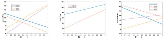 It can be concluded that the first-order partial derivatives of , and for are greater than zero. Therefore, compared with the absence of green supply chain management, the gap between product prices will increase with the increase of retailers’ fairness concerns.