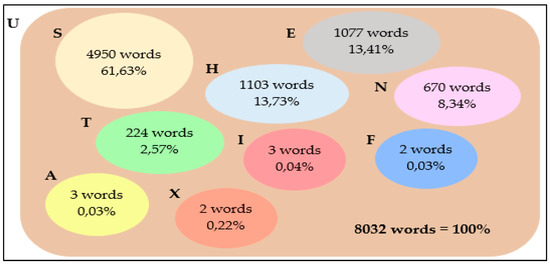 From the obtained data, the study focused on the Spanish word set because the setting of this research mainly expressed the information in this language and because the size of the information was mainly in Spanish. Therefore, from the Spanish set (S), new subsets were configured as shown in the following.