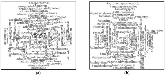 However, why is it important to analyze the text in tourist publications? Because answers are given, mainly the ones regarding the studied theories by [62], who highlighted that: (a) Language is constituted as a graphic system that expresses the social behavior and its knowledge as semiology [63]; (b) through linguistic registers, the variations of expression are evidenced, so prediction is manifested; and (c) semantics contain the meanings of social context. For this reason, and in agreement with [64], these signs represent the relationship or influence of an object—that is expected to be the tourist environment—and an interpreter, who is a traveler or tourist. However, as suggested by [65], they naturally express physical phenomena, for example, a sunset or a dance, or unconscious human behaviors that, by the way, will serve to make sense of something that is not consciously conceived [66].