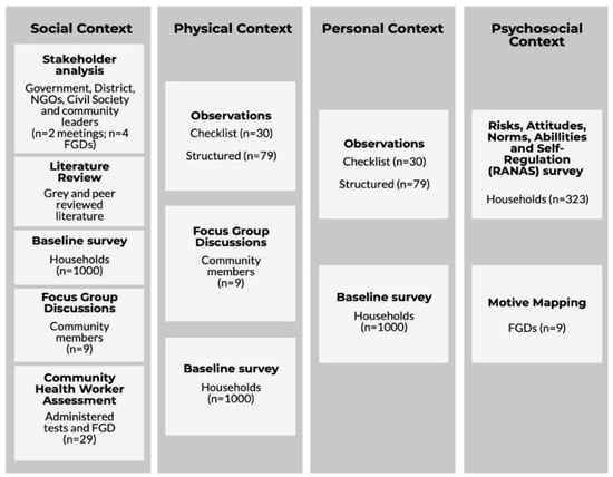 The formative results highlight the importance of understanding context in the development of an intervention in terms of personal, social, environmental, and psychosocial factors. In particular, the results highlighted the specific structural barriers to potential intervention success, such as poverty, social norms, and concerns pertaining to household abilities and self-regulation to maintain hygienic behaviors.