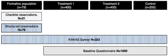 Behavior change will be analyzed by comparing the factors that were measured in the RANAS survey between the treatment and control areas between the three time points: baseline (n = 323), midline (n = 1000), and endline (n = 1000).