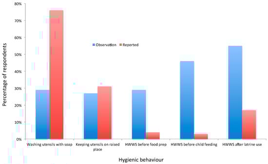 - Comparison of data from baseline and observations demonstrated that knowledge of good hygiene practice is high. However, this does not translate into practice, and as such the intervention should have a behavior-centered approach to address this gap (Figure 4).