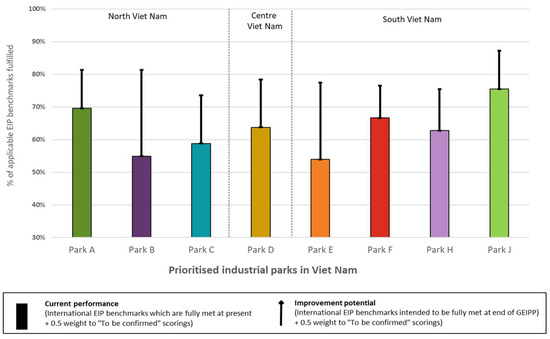 The application of the EIP Assessment Tool to date in Viet Nam and other project countries by UNIDO demonstrates that the International EIP Framework [24] provides a comprehensive and practical basis from which to assess industrial parks against international benchmarks [7,26]. It has created learnings to update some of the criteria in a subsequent version of the International EIP Framework, as some criteria were found not very practical (difficult to obtain the underlying data), not very relevant (too simplistic, too vague), or very difficult to comply with (almost never fulfilled).